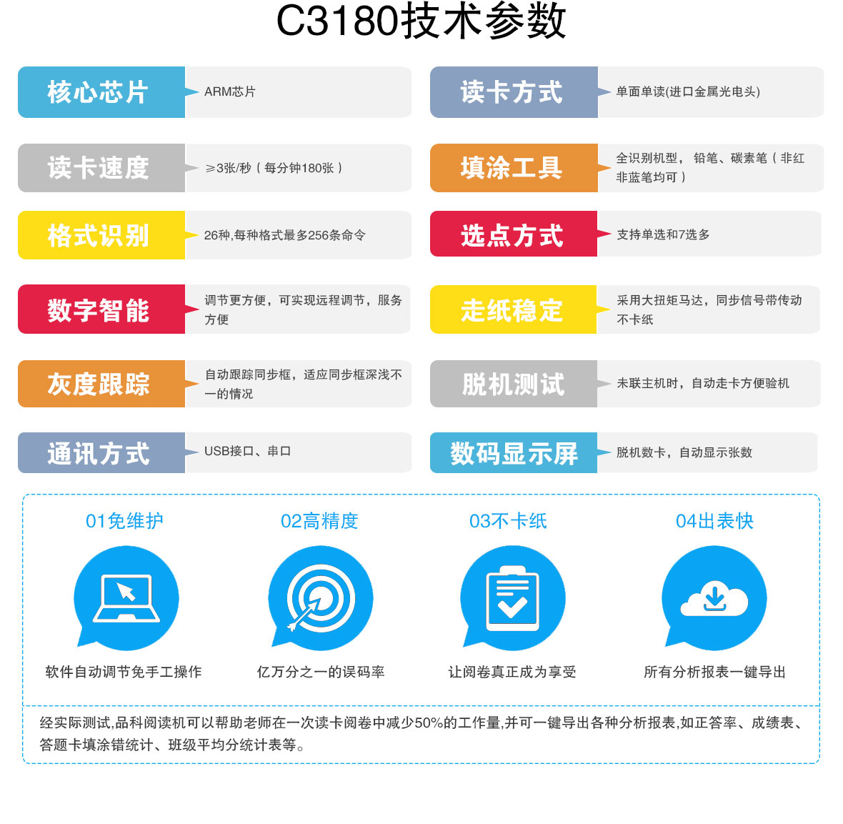 品科光標(biāo)閱卷機(jī)C3180可以進(jìn)行成績(jī)推送